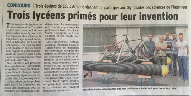 Projet de fin d’études pour le bac 2015 : Une équipe de lycéens de Louis Armand à Chambéry crée un Kit Tandem Amphibie