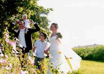 C’est avec la famille et les amis venus de loin et de moins loin pour assister à notre mariage religieux que nous avons échangé notre engagement sous un soleil radieux, dans le cadre somptueux de l’enfance entourés de nos enfants Antoine et Rose, le fruit de notre amour…