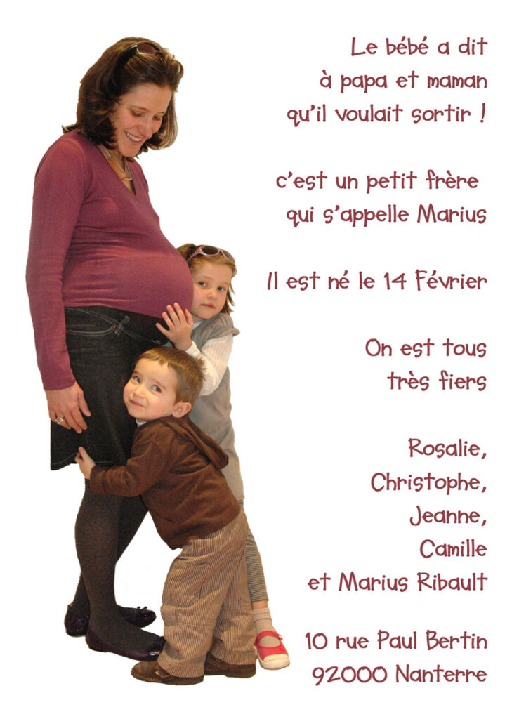 Merci beaucoup aux parents qui nous ont envoyé un faire part de naissance.