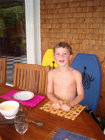 Les enfants profitent du beau temps( même si nous avons eu 3 jours de pluie la semaine dernière, une tempête tropicale nous ayant rasé la moustache!), Arnaud a fêté ses 10 ans, Eva n’est pas loin de se lancer pour marcher, et Romain est champion de surf et d’escalade .