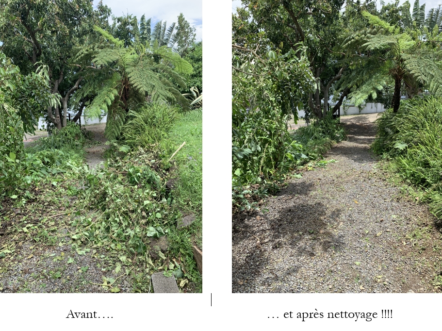 En ce qui nous concerne, nous habitons à 650m d’altitude, dans les hauts de St Pierre et, même si le vent a soufflé à 120km/h, les dégâts sont heureusement minimes. Un week-end de nettoyage et la vie reprend normalement son cours !