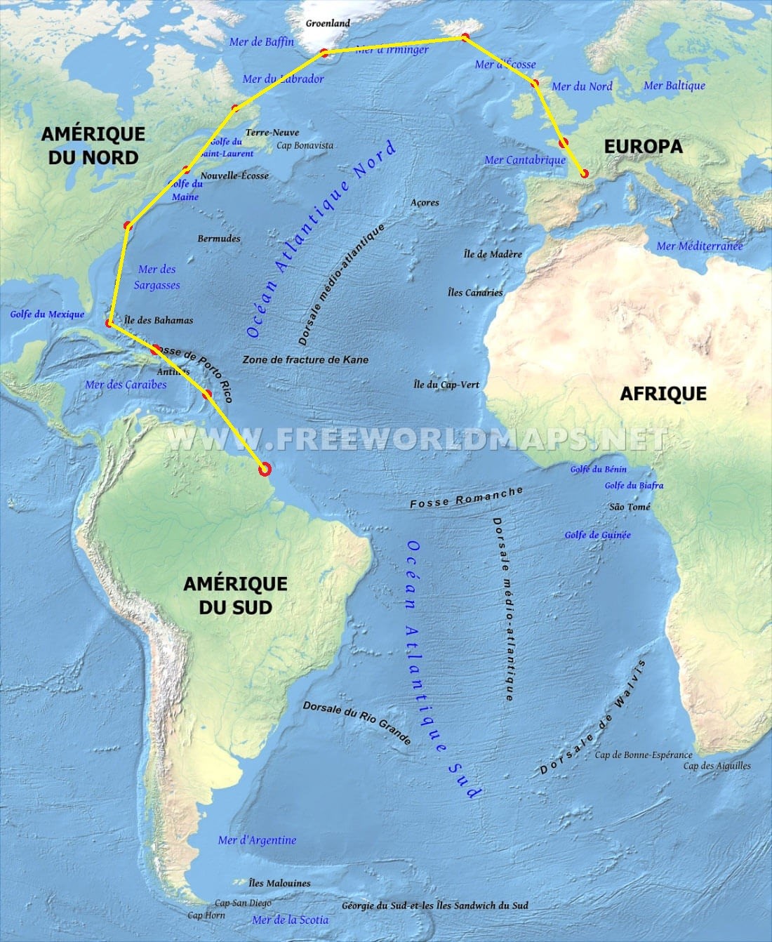 Il faut donc aller chercher l’appareil à Cayenne en Guyane pour le ramener à Rodez en Aveyron par la voie des airs, via les Caraïbes, les États Unis, le Grand Nord canadien, le Groenland, l’Islande et la Grande Bretagne. A priori onze escales qui en deviendront douze !