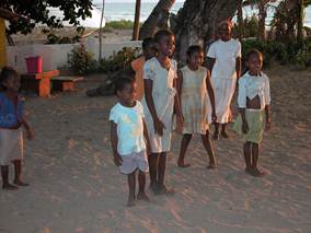 Comme à la Réunion, la nuit tombe vite et c’est une nuit noire. Vers 18h nous rejoignons notre hébergement, dînons vers 19 heures et nous couchons vers 21h ; nos journées sont chargées et pas de tout repos. Lever vers 6h (parfois plus tôt pour prendre un bateau, un avion ou tout simplement pour voir partir les pécheurs sur leurs pirogues), sur la côte est bain et la journée commence. Nous avons un programme chargé, des rendez-vous avec des enfants parrainés, des correspondants, des communautés religieuses, parfois un évêque et puis, les kilomètres sont là.