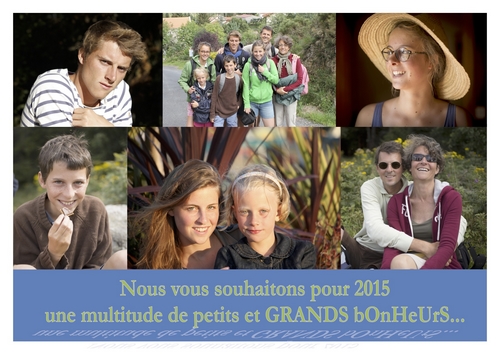 Crise, prises de tête, mariages, naissances : 2014 s’est bien passé ?! 2015 promet encore de nouveaux projets et de beaux sourires… faites nous partager votre bonne humeur et vos sourires en nous envoyant votre carte de voeux… mieux que facebook et plus rapide que la poste…